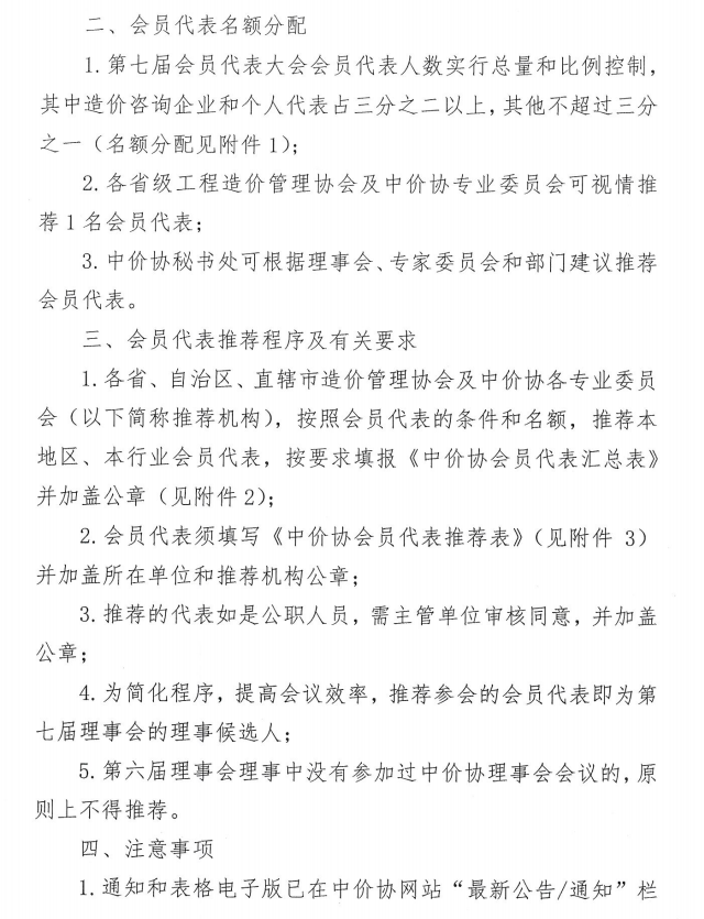 关于推荐中价协第七次会员代表大会代表的通知