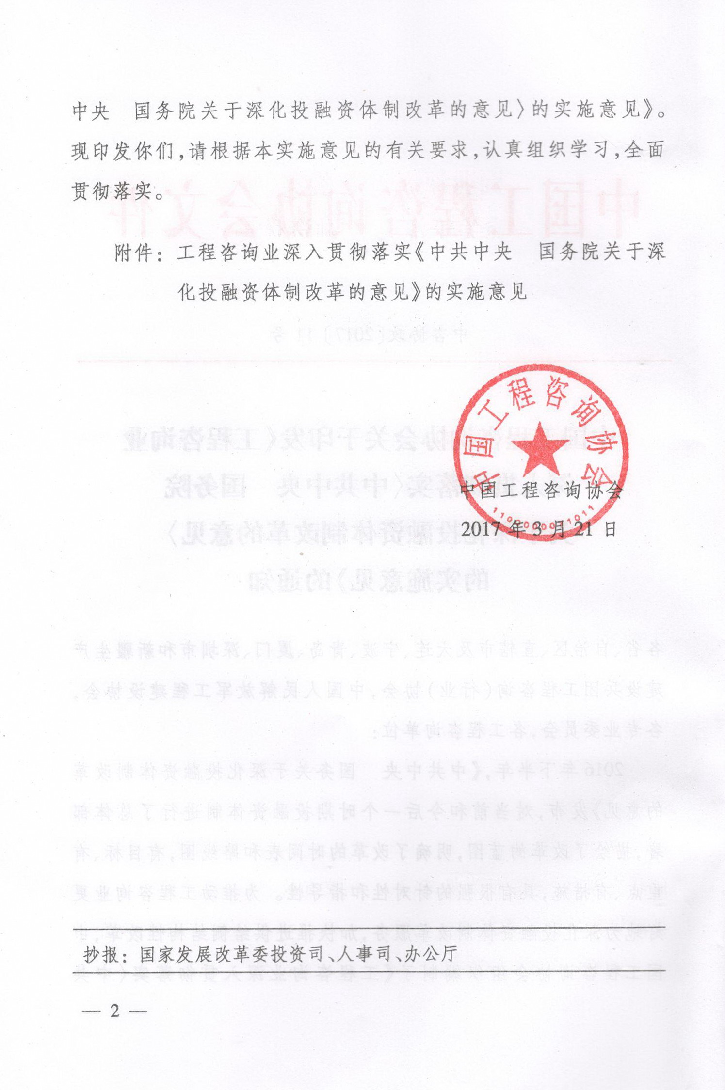 中国工程咨询协会关于印发《工程咨询业深入贯彻落实 中共中央 国务院关于深化投融资体制改革的意见 的实施意见》的通知