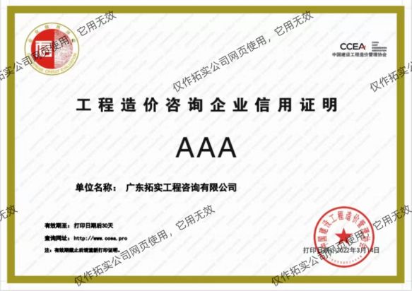 公司荣获中国建设工程造价管理协会企业信用等级AAA证书