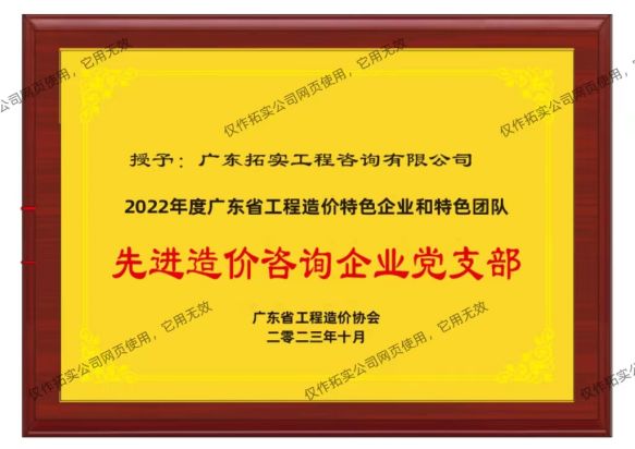 公司荣获2022年广东省工程造价特色企业和特色团队先进造价咨询企业党支部证书